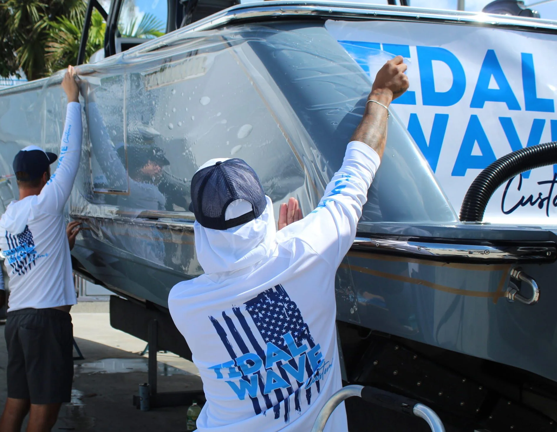 “Tidal Wave Customs wrapped our 46’ Valhalla with their Marine Protection Film, and the results are incredible! The whole process was seamless, and the turnaround time was impressive. Thanks to this wrap, we’re saving on upkeep without needing ceramic coatings or frequent detailing. I highly recommend Tidal Wave Customs if you want top of the line protection and hassle-free maintenance for your vessel. Thanks guys!”
